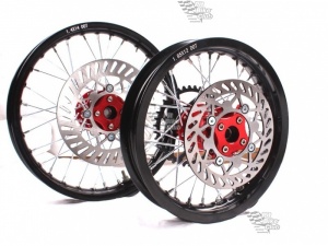 - 17 дюймов – это максимальные цифры, когда рассматривается мотоцикл с компактными размерами, ведь если использовать диски более 17, то звание питбайка можно легко потерять. Не ставить же только передние колеса с кричащими размерами!