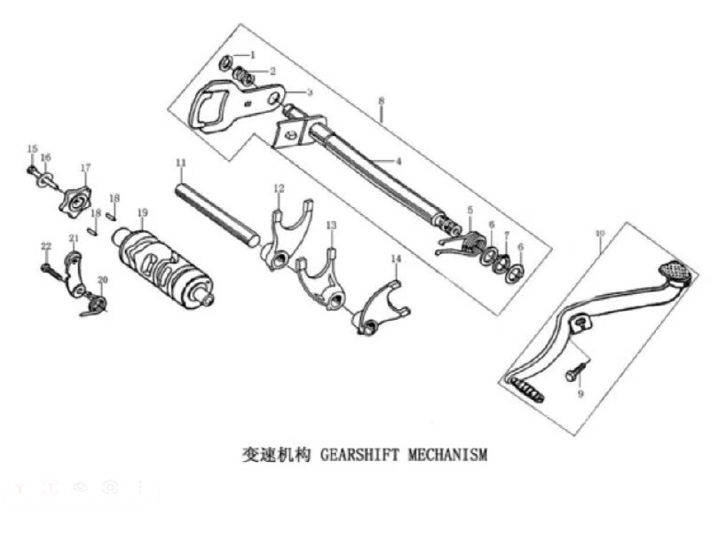 Валы переключения передач не ограничиваются одним видом. Они имеют множество разновидностей. Оригинальный код детали(ей) по каталогу запасных частей Zongshen: 100131436